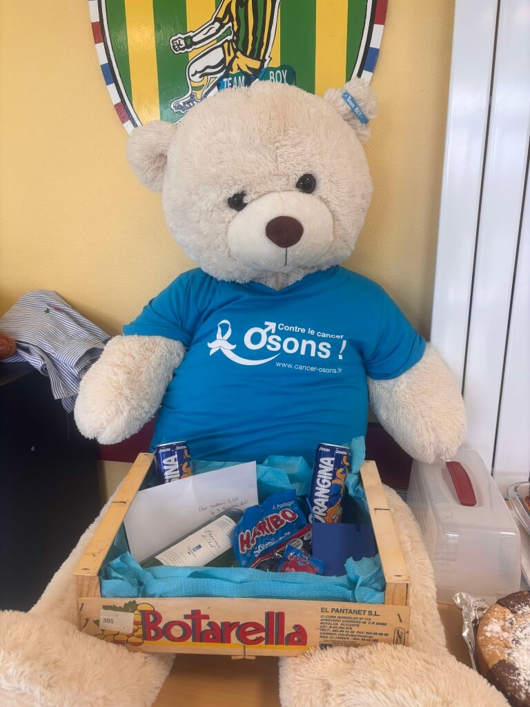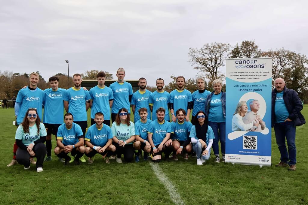 Après octobre rose, l’ ESR s’est investie pour novembre bleu qui sensibilse aux dépistages des cancers masculins. Beaucoup de bleu sur le terrain et aux alentours pour accompagner Martine et Eric MAURICARD de « CANCER Osons ». Des gateaux confectionnés par des joueurs et des bénévoles ont eté vendus à la buvette. Un concours de pronostic a été organisé sur la rencontre du jour. Trois participants ont misé sur la victoire de Rédéné sur les coqs du Trévoux par 4 à 1. C’est Jacques CARRÉ, le plus proche en nombre de bonne réponse qui remporte la peluche et le panier garni offert par « Cancer osons ». Environ 200 euros devraient être reversés à l’associations.
