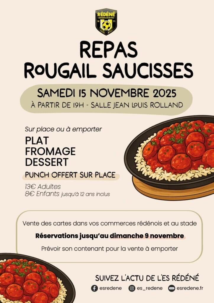 Le cartes pour le repas du 5 novembre seront en vente à partir du 25 octobre dans les commerces rédénois partenaire.